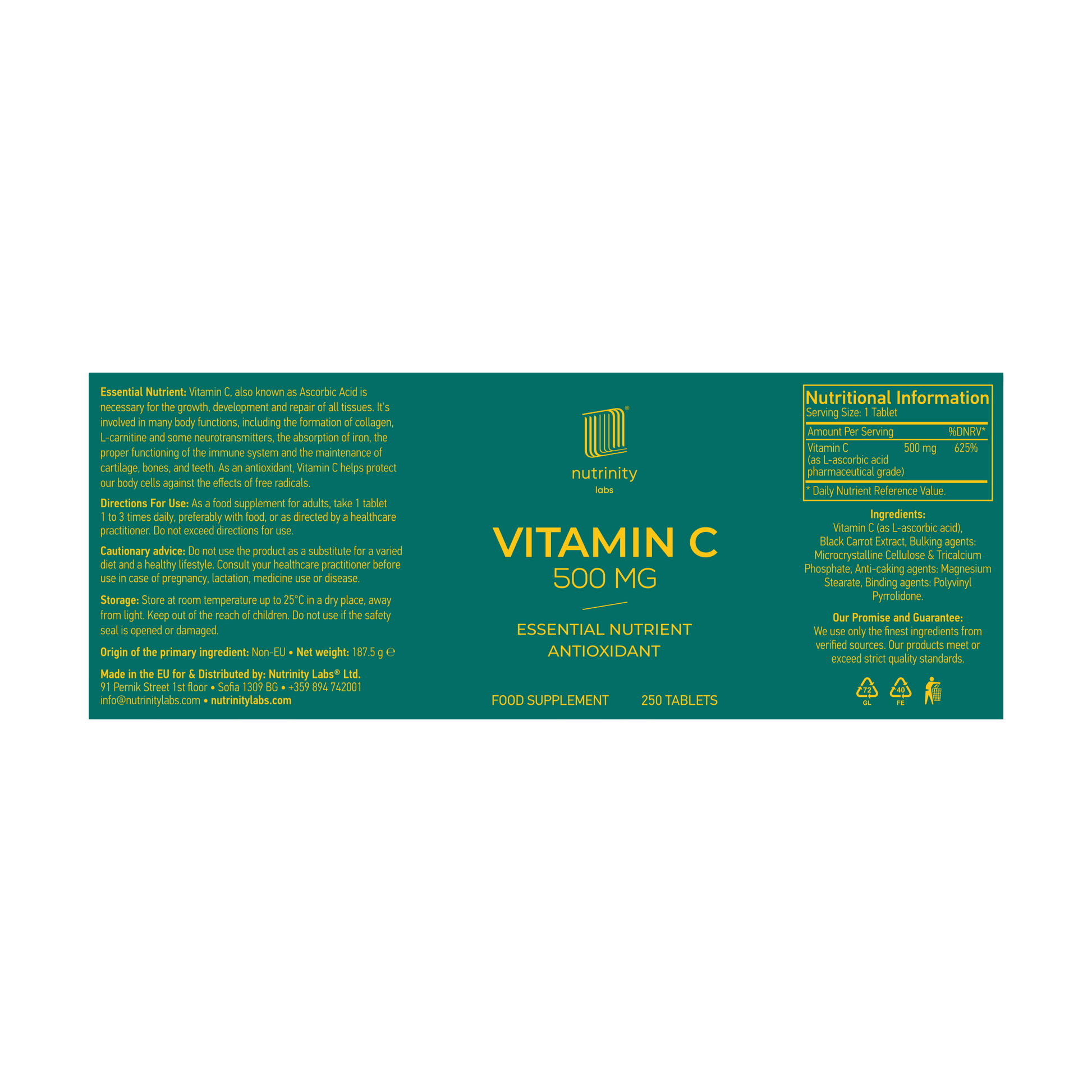 Essential Nutrient: Vitamin C, also known as Ascorbic Acid is necessary for the growth, development and repair of all tissues. It's involved in many body functions, including the formation of collagen, L-carnitine and some neurotransmitters, the absorption of iron, the proper functioning of the immune system and the maintenance of cartilage, bones, and teeth. As an antioxidant, Vitamin C helps protect our body cells against the effects of free radicals.